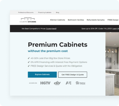 The design puts our key programs in the right places, which helps customers understand the value faster. It looks modern but it still feels like Country Kitchens because the messaging stayed true to how we talk to our buyers.