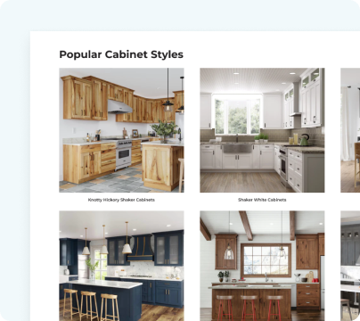 A visual grid of popular cabinet styles designed for comparison, with clear labels and a route to view all styles.